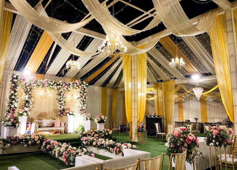 PREMIUM STARLIT CANOPIES AND DESIGNER CHANDELIERS. EVERY INCH IS A SILENT, ILLUMINATED TRIBUTE TO YOUR UNIQUE AESTHETIC VISION. WHERE GUWAHATI’S FINEST MOMENTS ARE CARVED INTO HISTORY.